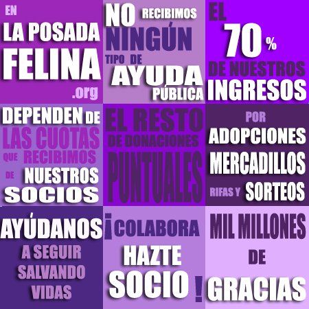 Los voluntarios que formamos parte de LA POSADA FELINAno podemos hacer frente a los gastos, y necesitamos tu colaboración. ¡HAZTE SOCIO!